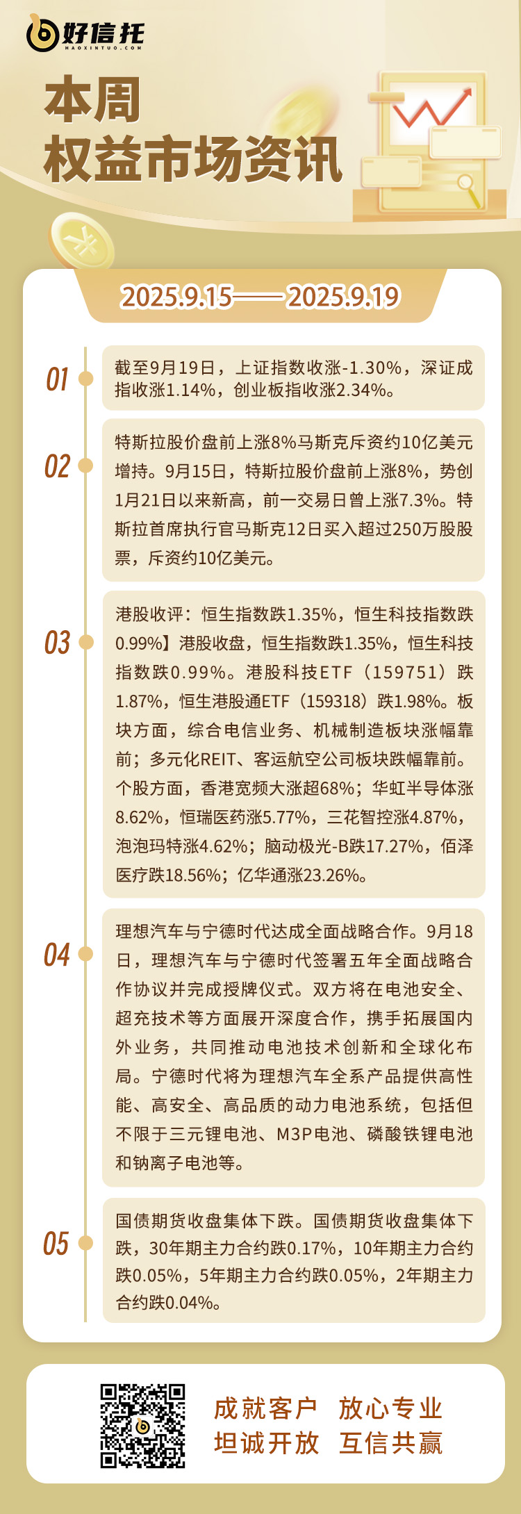 3、香港证监会、港交所回应施政报告 将推动资本市场长期稳健发展。9月17日,香港特区行政长官李家超发表2025年施政报告,其中不少内容均涉及香港金融和资本市场,香港证监会认为,施政报告就强化股票市场和优化上市制度的建议措施,将巩固香港作为全球首选上市地的地位。与此同时,将人民币柜台及房地产投资信托基金纳入沪深港通的建议,有助深化香港与内地市场的联系。在创新方面,有关扩展向专业投资者提供的数字资产产品和服务类型的建议,有望促进香港数字资产生态系统的发展。